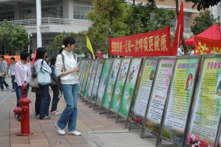 本网讯 3月24日,由广东省教育厅、广州市卫生局、广州市疾病控制中心主办,伟德bv国际体育协办的“防治结核,人人有责”宣传活动于南校区博雅园前空地举行。广大教工、学生积极参与,观看宣传展板,参与各项知识问答,了解有关结核病防治知识。