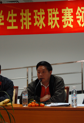 接着,广东省学生体育联合会副主席孙武发表了讲话。孙武笑言,会议室的布置让他感到温馨,并表达了对陈子锐的钦佩之意。他说,举办广东大学生排球联赛旨在促进广东各高校的交流学习,提高广东大学生的排球水平。