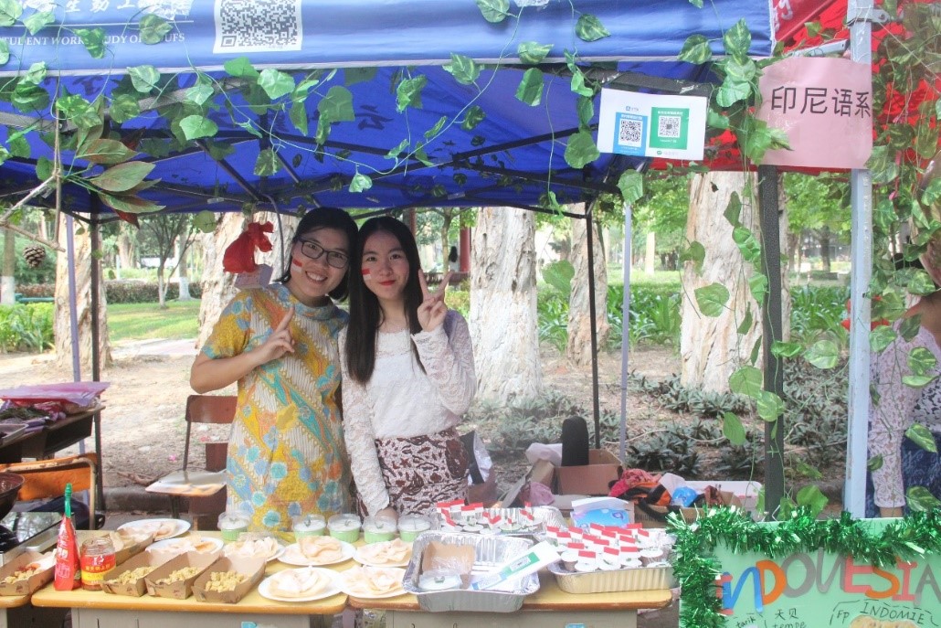 在展览区内,各语系都展示了其语系的经典书籍或是相关介绍资料,为大家展示各国风彩。东语学院的学生们不仅为大家准备了丰富多彩的文化展览和特色表演,同时为大家准备了各种各样的东方特色美食,让在场的师生们大饱口福。