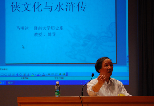 马教授还点评道,《水浒传》作为一部反叛的经典,其中的故事情节为当时的普通平民所推崇,从中我们可以读出当时人们迫切想要改变社会不公平的一种愿望,这恰恰反映出一个国家在制度上的不健全,人民的基本权利得不到公正的保护,只能寄希望于“侠”的力量来维系正义。制度法规越健全,“侠”在民众价值体系的影响力就会越弱。我们国家的领导人也领悟到了这一点,近些年来在推动法制建设、构建和谐社会的工作上也取得了卓有成效的功绩。