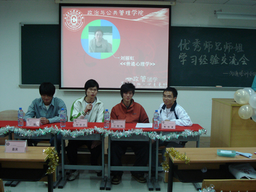 从左至右分别是:王魁 何景杰 吴锦池 张伟彬同学 在自由提问环节中,新生们就如何把握学习重点,如何看待考试成绩等问题进行了认真的咨询。这几位优秀学生不仅将平时总结的学习经验慷慨相授,还将学习中的小诀窍倾力相传,使同学们获益匪浅。 此次交流会学习气氛浓厚,充分显示了学院新老生的和谐和团结。到场的同学纷纷表示,这次交流会解决了他们对大学第一场考试的疑问,并为他们的学习指明了方向。 |
