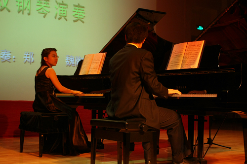 随后,钢琴、大提琴与古筝共同演奏的陕北民风作品《山丹丹开花红艳艳》古今结合,中西合璧,不但带给观众声色感三位一体的崭新体会,还体现出了艺术学院基于历史、勇于创新的特色。