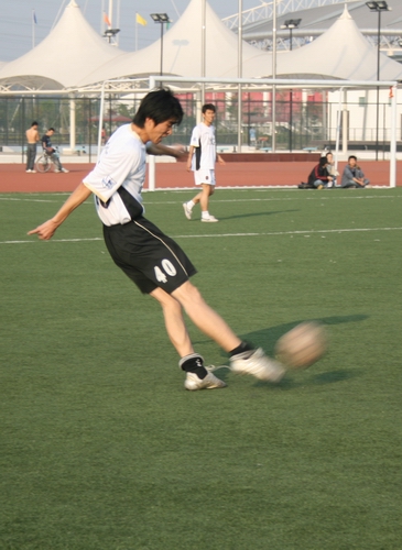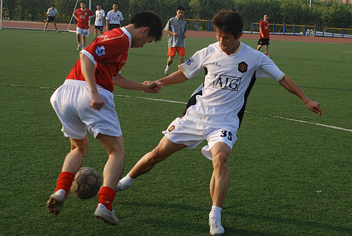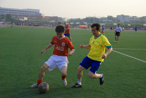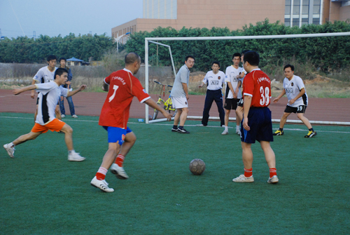 本网讯 12月2日下午4点,南北校区男子教工足球赛在南校人工草场展开较量,学校有关部门的老师及各学院多名辅导员换上平常难得一见的足球运动服驰骋于绿茵场上一展球技。比赛在一片欢快融洽的气氛中进行,最终北校代表队技高一筹,以7:5的比分力克劲敌南校代表队,获得了本场比赛的胜利。