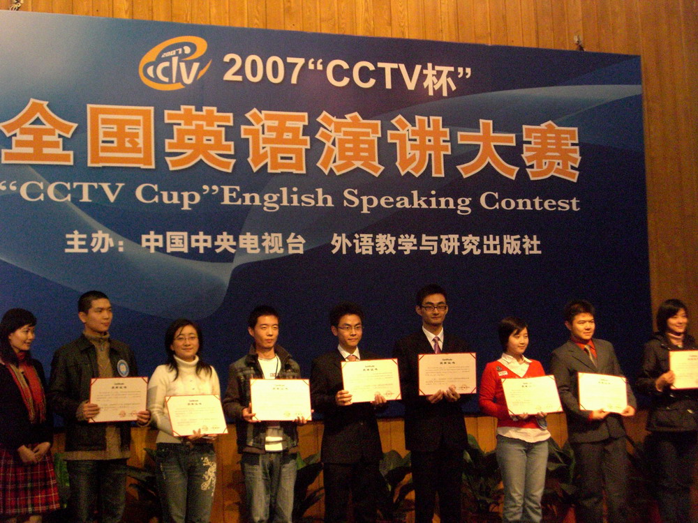 本网讯 11月9日,伟德bv国际体育英文学院05级高翻3班的王禄同学前往北京参加CCTV杯英语演讲比赛全国半决赛和决赛。这次比赛汇集了来自全国33个省市自治区的91名选手。这些选手都是经过大赛的层层选拔后产生的,同时都代表了各个省份的英语演讲的最强实力。