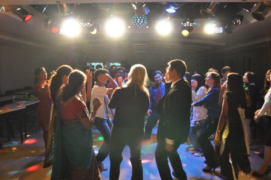 随着一支恰恰舞的结束,持续了2个小时的晚会也将近尾声。但大家仍然玩兴正浓,不停地邀请刚认识的朋友在相机前展露笑颜,合影留念。于是晚会被自然延长。一首solo dance的舞曲响起,在变幻闪烁的舞台灯下,大家跟着SDC舞者学了几个简单的机器舞动作,一起跳起了欢乐的圆圈舞。半个小时后,每个人才都依依不舍地离开晚会现场。