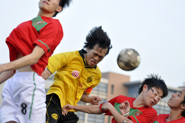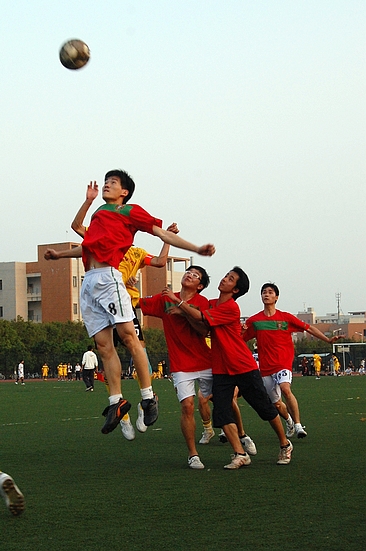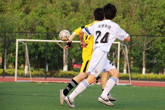 政管学院与管理学院对抗赛中 双方队员争抢球