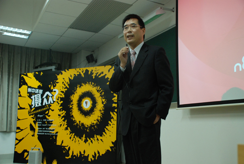 本网讯 11月28日晚7点在南校区E305,旭日因赛广告公司总裁王建朝给同学们带来了一场主题为“射中还是摄众”的有关广告理论新发展的讲座。新闻与传播学院院长郭光华,学院党总支书记何洪亮、副书记陈华荣等出席了讲座。同时,王建朝接受了新闻学院为其颁发的“特约研究员”的聘书。