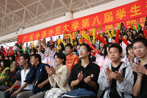 国际经济贸易学院的大本营里,啦啦队整正激情洋溢地呐喊,他们的声音在风中飘扬。运动员来了,她们站起来欢呼;运动员走了,他们依旧为运动员打气。为此,经贸学院团委书记郝光被这群自发的啦啦队感动。他说,这也是运动精神的另一种体现。