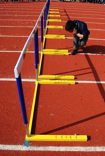 枪响,旗舞,一个个干净利落的动作,化作了运动员前进的动力;旗落,记分,留下了运动员收获的成绩。作为运动会必不可少的一份子,助理裁判们有的协助清洁工清理跑道上残落的礼炮花,有的抗着沉重的跨栏,把它们一一摆置整齐,有的已挥舞着着手中的小黄旗在各排跨栏前作好边裁的准备,检查选手是否有犯规行为。