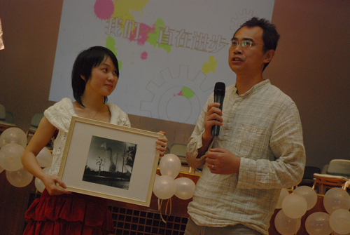 安哥老师也在热烈的掌声中走上舞台致词。他在讲话中肯定了广外的风气和文化修养,并激励广外的摄影爱好者继续以如此的热情去探索摄影的魅力,坚持拍身边的人和事,在练好基本功的同时要有新的突破。