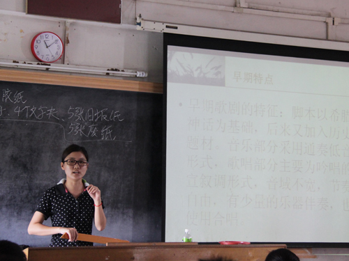 09西班牙语的李雅珺在设计课程时,把自己在大学上的通选课的内容带到了课堂,做到了学以致用,也让文化流动起来。在第一节课上,李雅珺从介绍歌剧本身出发,向学生介绍了世界各大歌剧院、经典歌剧作品、音乐剧等等。为了让同学们对歌剧之美有感性认识,李雅珺也在课堂上播放了经典歌剧段落,比如《蝴蝶夫人》中的《晴朗的一天》、《图兰朵》中的《今夜无人入睡》、《卡门》中的《哈巴涅拉舞曲》以及《斗牛士之歌》等等。据很多同学反映,这是他们第一次接触歌剧,歌剧欣赏让他们知会了一些以前没有了解过的内容,拓展了他们的视野。