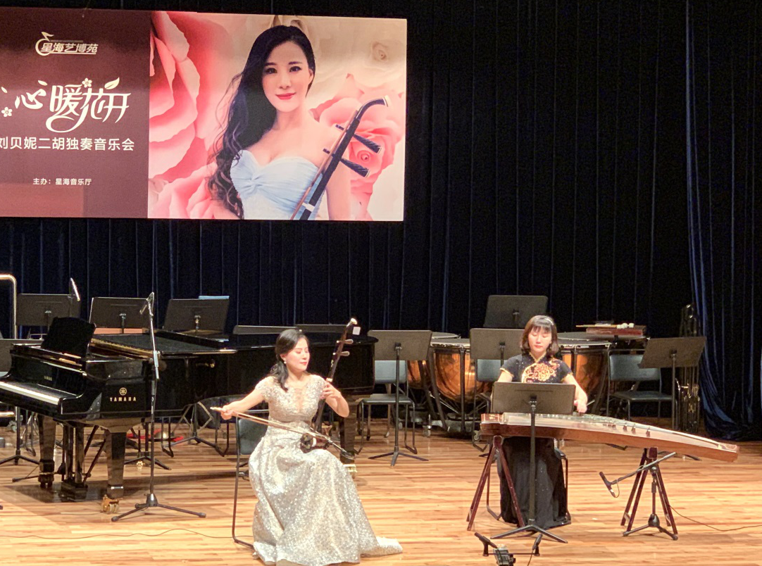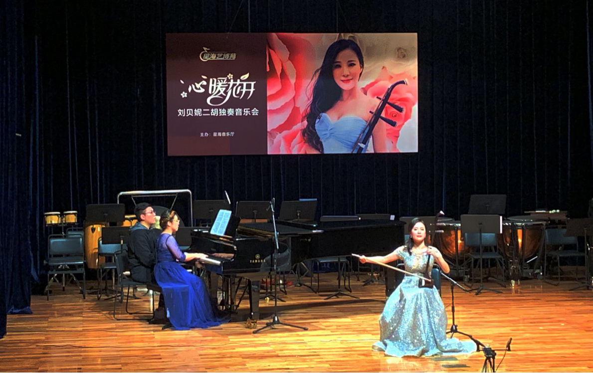 本网讯 3月22日,伟德bv国际体育艺术学院副教授刘贝妮“心暖花开——二胡独奏音乐会”在广州星海音乐厅举办。此次音乐会是伟德bv国际体育南粤古驿道艺术文化研究中心系列活动之一,也是打造广外艺术学院艺术实践与创新的教育品牌,促进音乐人才的培养的音乐盛会。刘贝妮携手中国著名指挥家、作曲家、国家一级指挥候丹平,与广东民族乐团的演奏家们一道,为观众献上了一场国乐视听盛宴。