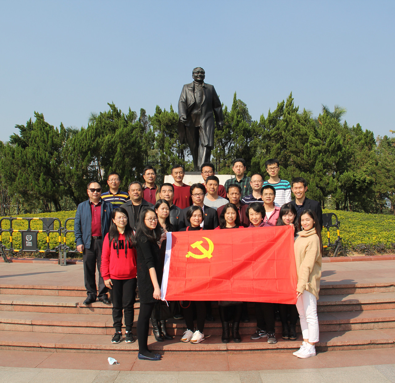 随后,后勤党总支一行登上莲花山山顶广场,来到邓小平铜像前,面对鲜红的党旗,再一次举起右手重温入党誓词,缅怀老一辈无产阶级革命家的奋斗历程、崇高品质和精神风貌。