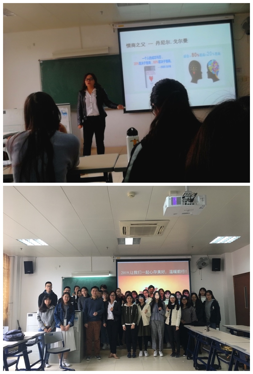 文学系举办《情绪管理工作坊》活动,邀请广东工程技术学院教授郭希通过工作坊的形式和同学们一起探讨如何拥有更健康的心理。郭希认为,情商是觉察、控制自己情绪的能力、控制和激励自己行为的能力、觉知他人情绪的能力、并和别人友好的相处的能力,并邀请同学们参与情景剧,在实践中体会学习。