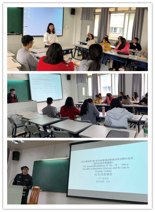 语言学系结合教学和论文写作,为学生安排了《师生见面会》和《毕业论文进展汇报》。七位优秀教师作宣讲发言,就研究方向、在研项目等向同学们作以介绍,帮助学生更好地明确专业方向学习目标和未来发展规划。