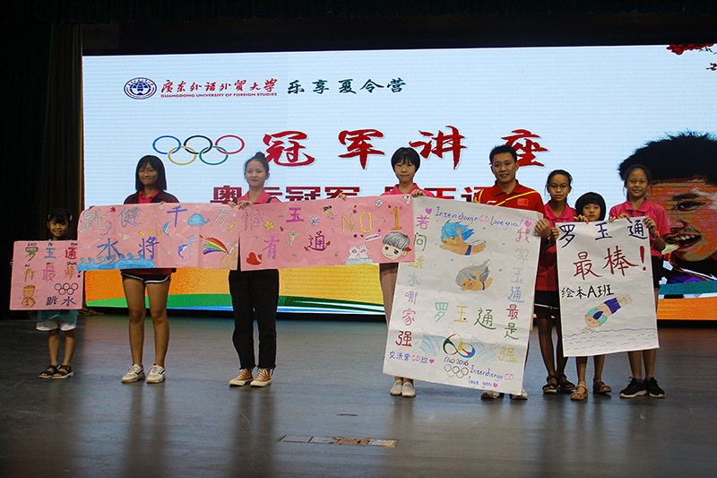 本网讯 7月26日下午,伟德bv国际体育,BETVICTOR官网乐享夏令营“奥运冠军讲座”在北校区六教报告厅举行。邀请2012年伦敦奥运会跳水冠军罗玉通,与夏令营师生分享他的跳水故事和成功经验。继续教育(公开)学院副院长、广外体育部副主任以及夏令营教学组负责人等出席活动。