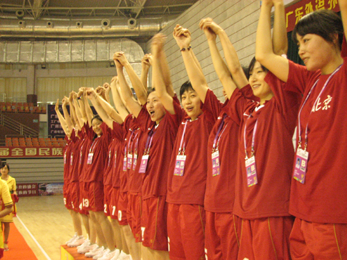 此时,北京队10号队员挺身而出,她利用罚球和远吊球拿下北京队后5分中的4分,河北队在关键时刻连续出现了几次失误,比赛还剩27秒结束时,河北队31:34暂时落后,此时,河北队发动快速反击,一记反弹球由于持网队员踩线被判无效,也错过了追平比分的绝好机会。北京队将优势保持到了最后,并以35:32战胜了河北队,夺得本届民族运动会女子珍珠球赛冠军,河北队则屈居第二。
