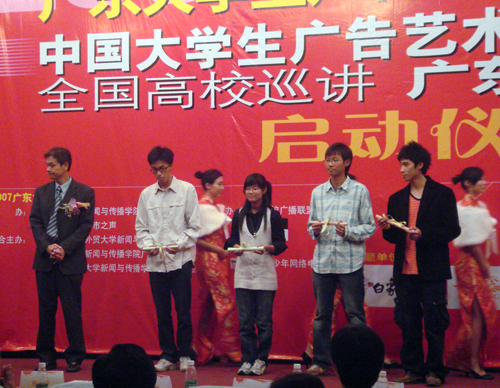 本网讯 11月15日晚,2007年广东大学生广告节开幕式暨2007中国大学生广告艺术节学院奖全国高校广东站巡讲在暨南大学曾宪梓科学馆二楼报告厅隆重举行。
