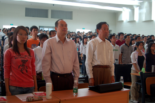 庄严的奏国歌仪式后,卢景辉结合党的十七大会议精神阐明了本次党校培训开班的重要性。