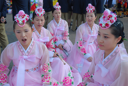 衣襟上粉红的牡丹,让朝鲜族妇女显得清丽脱俗。