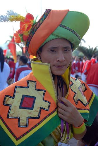 五十六个民族,五十六枝花。在祖国母亲的怀抱里,五十六枝花争放芬艳。第八届少数民族传统运动会在广州举行,让生活在广州的我们有了与少数民族零距离接触的机会。作为在广州求学的大学生,我们有幸观看了此次运动会的开幕式彩排。更幸运的是,我们的镜头捕抓到了一些风格迥异的少数民族服饰。下面,请跟随镜头,走近少数民族,从中领略些少数民族的文化吧。