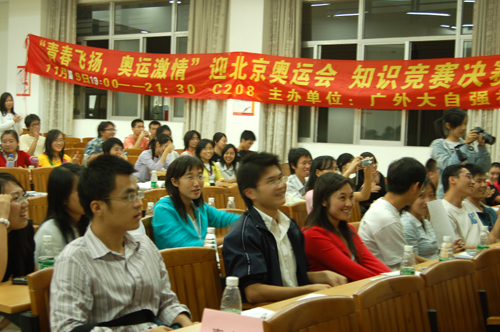 本网讯 11月9日晚7点,由广外自强社主办的迎北京08奥运知识竞赛决赛在南校区C208拉开帷幕。从205人中脱颖而出的12名选手组成的四支队伍参加本次决赛。最后,“水立方”队轻取决赛冠军。