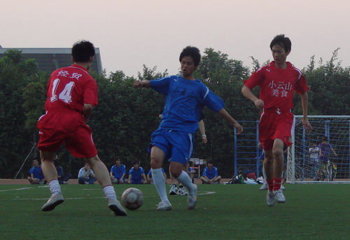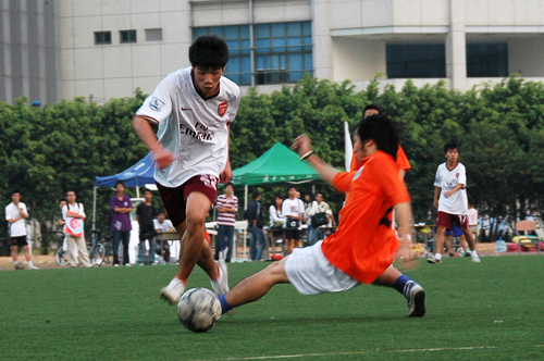 比赛依始,双方都踢得比较谨慎,没有组织起太有效的进攻,经贸控球稍微占优,而信息学院坚固的防守不给经贸学院太多的机会。0-0的比分维持到了上半场结束。