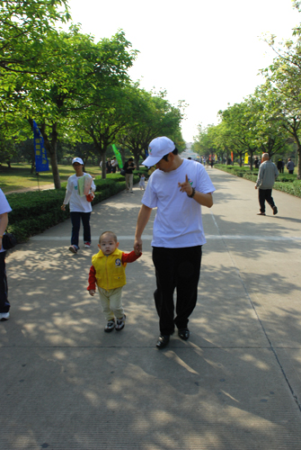 授旗仪式结束以后,志愿者们开始了他们的万人绕湖长跑活动。他们的任务是要在环湖跑的过程中给游客派发创卫传单,以达到他们宣传创卫和环保的目的。有些游客还停下来仔细聆听环保志愿者们的讲解和叙述,与志愿者们交流了他们的感想和建议。