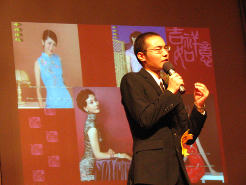 B组讲介的产品为“辛语”旗袍。该组的PPT选用不少身着旗袍的模特照片,而最有特色的是在B组3号选手进行讲介的过程中,同样作为选手的刘蓉身穿旗袍,作为“辛语”旗袍的真人模特出现在舞台上,配合着组员的讲介。B组选手在讲介过程中不仅注意到商品本身,而且紧密结合品牌的推广,并把“辛语”旗袍定位为“身份的象征,对梦想的追求”。