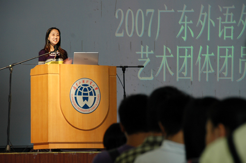 首先,由谢秀兰副书记代表校团委致词。谢书记先向进入校艺术团体的全体新成员表示了祝贺,然后对校艺术团体过去取得的成绩和在学校文化生活中所起的作用给予了充分的肯定。同时谢副书记也对校艺术团体今后的发展提出了殷切的希望,特别是对新成员提出了“把握机会、加强合作、展示自我”的建议。