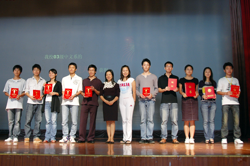 谢秀兰副书记、涂颖老师为获奖同学颁发证书