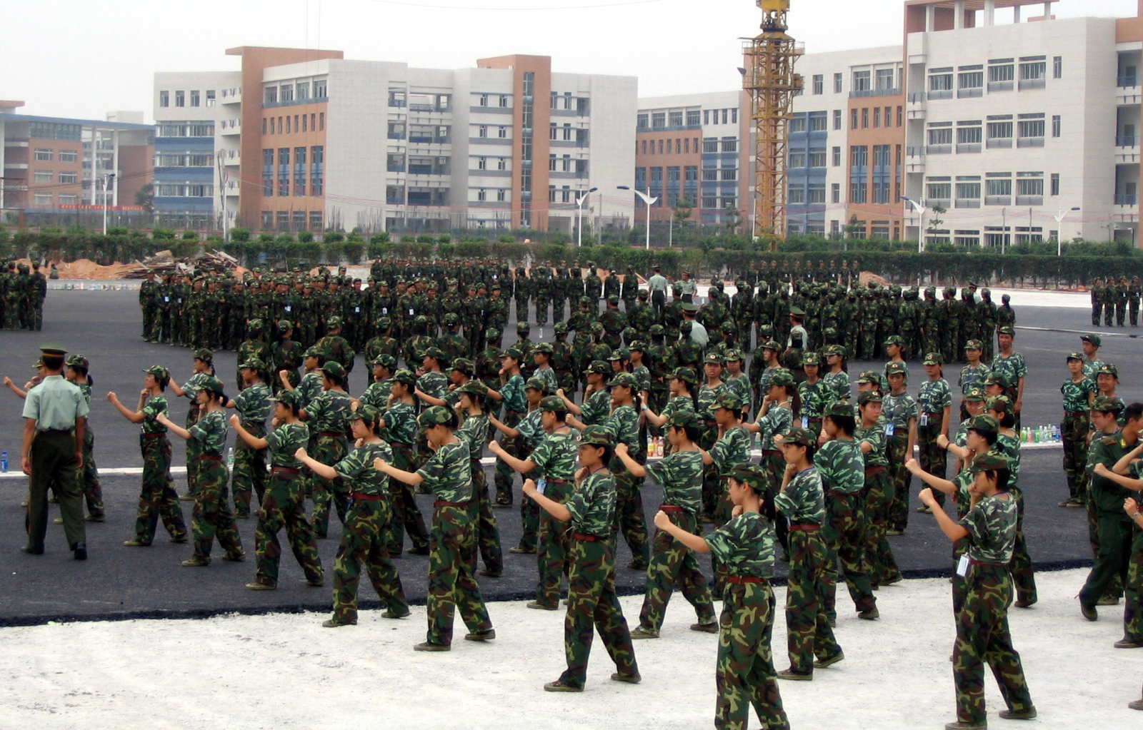 由于图书书馆和艺术楼都还没有建成,只是一堆钢筋水泥砂粒。每日在图书馆前面的空地上训练时,无高大的建筑物阴影或树木遮荫,还要忍受耳边施工产生的巨大音量,条件不可谓不艰苦。