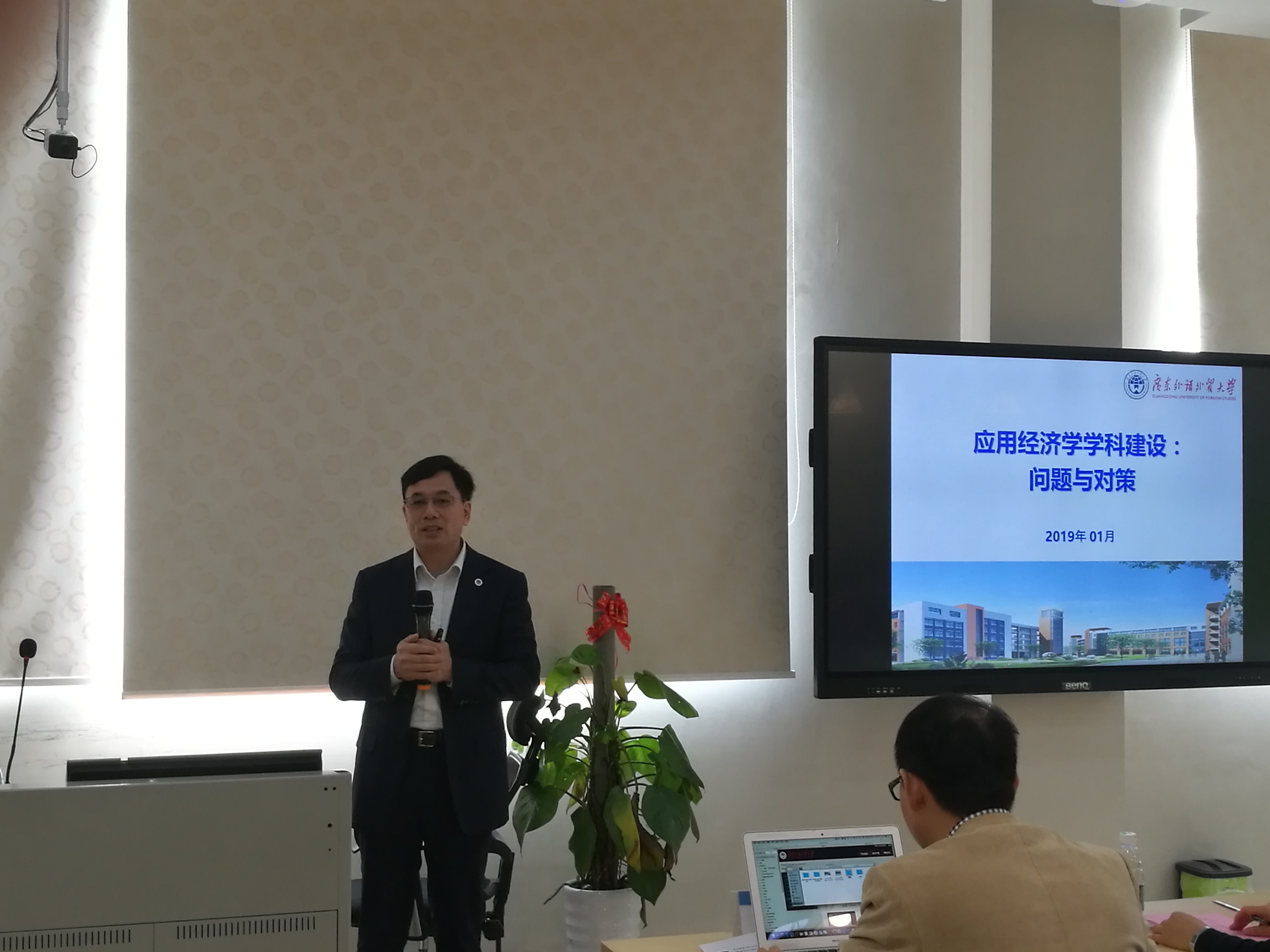 本网讯 1月14日上午,经贸学院邀请伟德bv国际体育副校长何传添作学科建设专题讲座。经贸学院全体教工、国际经济贸易研究中心、粤商研究中心、广州国际商贸中心、国际服务外包研究院代表出席本次讲座。讲座由经贸学院院长张建武主持。