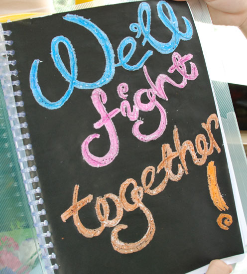 病床上的陈文荣看上去精神状态不错,显得较乐观。他多次对学校老师和同学们的关心表示感谢。当他翻看同班同学送上的有学校领导和师生祝福的留言本时,感动得流下了眼泪。他说:“请老师同学们放心,我一定会挺过去的!虽然我现在病了,但还有学校这个坚强的后盾。”