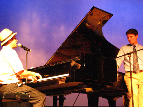 钢琴家艾力•雅明接触钢琴13年了,在演奏时一直非常投入,脚步时不时跟着节奏起舞,在钢琴架旁的他仿佛与钢琴融为一体。他头戴一顶圆边帽子,颇有牛仔风格。他说,这是他第一次来到中国,今晚感觉很好,感受到这里学生洋溢着的激情。下星期就要回纽约的他表示,以后会继续和乐队一起演出,平时还会教书。