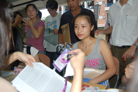 2日早上,一场细雨驱散了往日的酷暑,但阴沉的天气也给新生入学带来了不少的麻烦。七点未到,整个校园已经开始了忙碌的新生接待工作。在新闻学院的迎新处,学院的欢迎横幅上打出了“播主专业”四个醒目的大字,上面还盖了个闪亮的“NEW”标志。而在信息学院的新生接待处,一进去就看到了标有“网络信息”的志愿者服务处。从新生报到名单上看,已经有几位学生一大早便来到报到处报到。