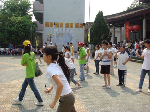 在“三下乡”的前期准备工作中,当得知基地学校学生的学习成绩、组织纪律较差,是中考成绩两三百分的那类学生后,我服务队的队员很受打击,都感受到一种无形的压力压在我们身上。但是,在困难面前我们并没有退缩,而是改变了教学策略。