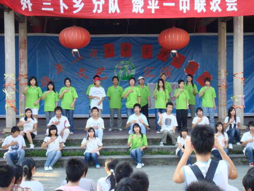 在这期间,你们问得最多的两个问题是:老师,我的成绩这么差,还有希望吗?老师,这一学科应该怎么学?从这些问题中,可以看出你们是很想把学习搞好的,只是你们的基础有点差,学习的环境、氛围不是太好而已,只要你们努力,把握好剩下的两年时间,你们肯定能够考上理想的大学。在义教接近尾声的时候,我们听得最多的一句话是:“老师,你们的到来使我喜欢上读书了,我答应你们,我一定会好好学习,努力考上大学,也要参加像你们一样的‘三下乡’活动!”大伙们,请记住答应过我们的话,我们很期待两年后的高考,希望你们成功!