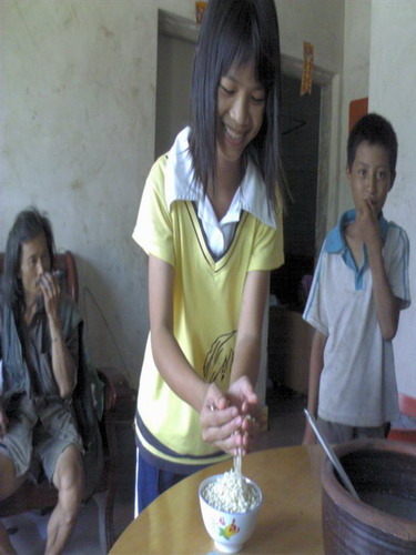 到了她家,我发现了更令人心酸的一幕。个子小小的弟弟兴冲冲地含着一根烟从屋外走进来。她气愤地夺过那根烟,扔在地上。弟弟却先开口大骂,甚至还想打姐姐。我们从小瑞口中得知,弟弟今年13岁,在小学三年级的时候因为经常违反纪律被学校开除了。她告诉我们,弟弟妹妹都不懂事,妹妹14岁了,因为留级还在读小学五年级,在家里,家务活几乎都是她一个人干的。看着不懂事的弟弟妹妹,我明白了什么叫“哀其不幸,怒其不争”。