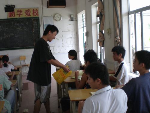 同样是缘分,让我们与阳春二中的孩子们相遇,相识,相知,相亲,相爱……虽然是短短的十天,但在其中,我们形影不离地分享分担着彼此的喜怒哀乐。趣味运动会上,孩子们团结拼搏,老师们竭斯底里地助威呐喊!抽离运动场上的一切形式,看到的便是团结友爱的光环!晚会上,老师和同学们的同台献艺更是凝聚了彼此之间的深厚情谊!而那份情谊在那些瞬间又是流露得那么真切,自然,淋漓尽致……晚会过后,离别的不舍气氛便开始肆意渲染,抽泣,拥抱成为了主旋律,漫天飞散……不过最后我们还是以轻松的聊天,游戏阻止了离愁别绪的继续蔓延,慢慢地,静静地,融入到黑夜之中。次日中午,我们坐车离开了,离开了阳春二中,那片多情的土地。孩子们含泪送别的场景仍在脑海中回旋,不过由汽车起动的那一刹那到离开,我都没有流泪。正如我跟孩子们说过的那样,是缘分把我们维系到一起的,虽然现在要短暂离别,但缘分会继续,我深信!