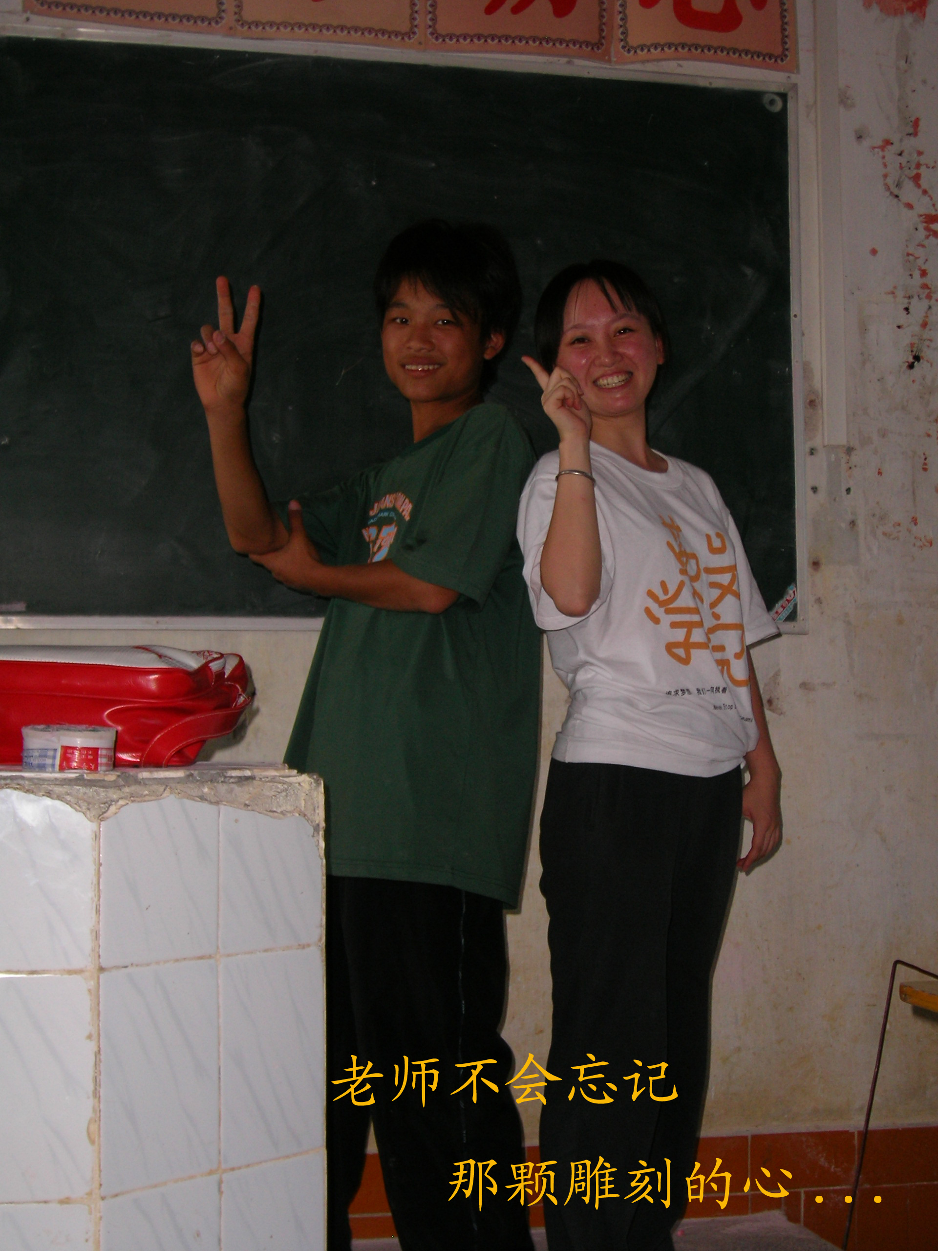 “亲爱的老师:对不起,我从明天开始不能再来上课了。我妈妈的脚受伤了,我要和爸爸一起到佛山去看望她。很舍不得你们,以后不能再上你们的课了,可能当我回来的时候你们已经走了。不过你们放心,我一定会好好学习的,我会像班歌唱的那样,为了自己的梦想努力学习的。” 这是四班一个高高的男生给我们三位班主任写的一封信,也是我们来到三排收到的第一封信。短短的一封信带给了我们很大的震撼,使我感觉到肩上的责任又重了,而他也成为了我们永远的牵挂。