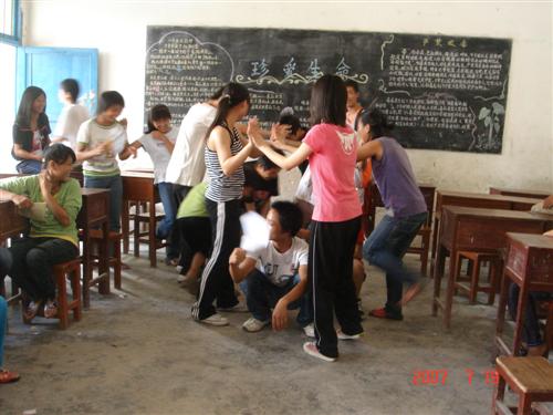 我们的其中一部分队员则再次走到学校的教学楼前面,与这座曾经与学生们分享过快乐与伤心的建筑物来离别前的最后一次亲密接触。平时上课的时候教室的门是敞开着的,好像特意要迎接我们进去似的。教室内最能勾起队员们思绪的是学生们在黑板上写着的送给我们的祝福语。一句简单的“老师,你们辛苦了,我们不会忘记你的!”让我们感动不已。我们与学生们相识于教室,在教室里分享过快乐,也在教室了经历过告别会时的伤心。教室里一块黑板,一张课桌,甚至是一支粉笔都见证着我们与学生这十天来的相处。