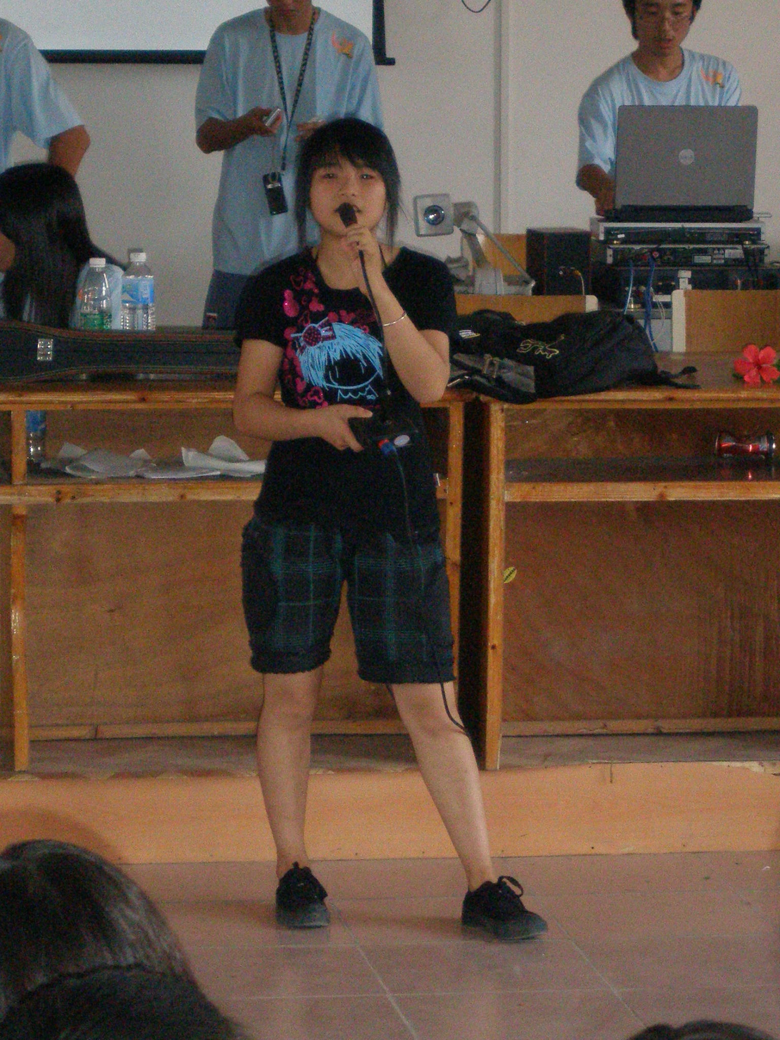 伍婉秋,我们三班的一个阳光女孩,在第一天早上就给了我们一个大大的惊喜:在和学生见面前我们从杏花中学的校长口中了解到,这些学生英语基础都比较差,而那个早上我们要求学生们介绍自己,所有学生都很害羞,可是轮到她时,她竟然用英语来介绍自己……从此,我们对她刮目相看!