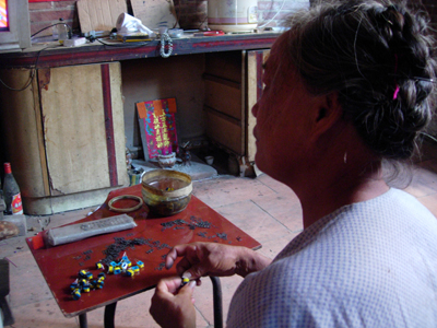 大爷行动不便,大娘就只有日夜守在他身边。尽管有政府发放的最低生活保障金,大爷的医疗费也能报销,他们的生活依旧很艰难。因此,大娘常常为附近一些工厂安装一些小电子零件。工作很简单,只要把一些小铁片插进一个塑料壳里,每个壳装12片。我计算了一下时间,装一个大约得花两分钟。她说,这还只是一半工作。完成另一半才能得到报酬:两分钱一个。大娘有白内障,眼睛看不清,做得非常慢,一天辛劳下来也只能装一、两百个,那才三、四块钱啊。我们都惊呆了,三、四块钱对于我们意味着什么?一个雪糕,上一小时网……而对于大娘,那却是一天的劳动。但她无怨无悔地做着这一切……