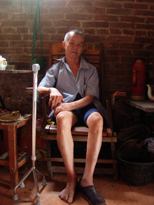 屋里却是这样一幕:叶大爷斜靠在桌旁的一张木椅上,嘴角向左歪着。一边木木地看着我们,一边用右手在饭碗里搅着。让人看见只能想起“悲凉”二字。叶大娘说,大爷左半身完全瘫痪,只有右边才能动,走路也只能靠拐杖一步步移,走两三步就几欲摔倒;他从门槛出去时都得爬,这3年来,他很少出去。大娘说着说着,眼角就溢满了泪水。