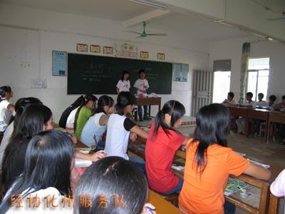 中垌镇虽只是化州市的一个小镇,但当地人对知识与教育的重视却令我们感到惊讶。当中垌中学的校长把190、191班的学生交到我们手里的时候,他曾对学生们说:“读书令人成长,知识改变命运,你们要好好向这些大学生老师学习。”他们对大学生发自内心的尊敬让我们受宠若惊。