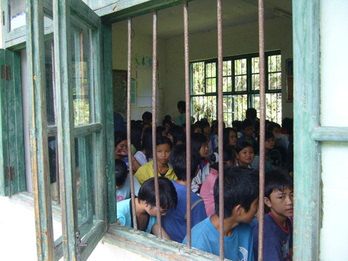 师生见面会,残陋窗户里的一张张单纯面孔,我们相遇在这一刻。