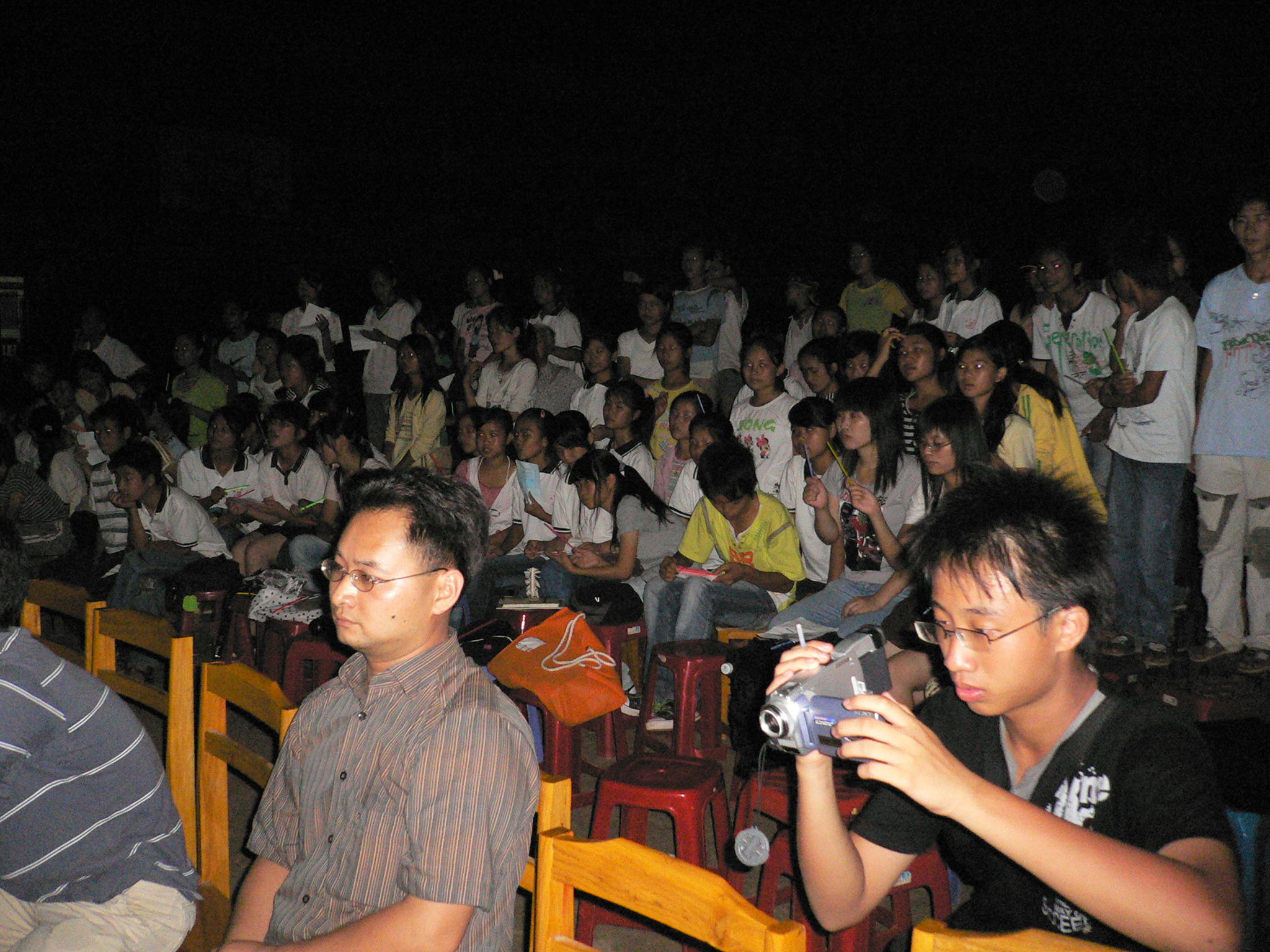 离开礤下中学的前一天晚上,我们在学校里搞了一次主题为“爱因为在心中”的师生联谊晚会。晚会举办得很成功,掌声与欢笑声接连不断,全场观众的热情也一次次沸腾至顶点。