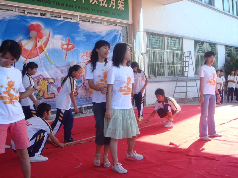 五班同学表演竹竿舞