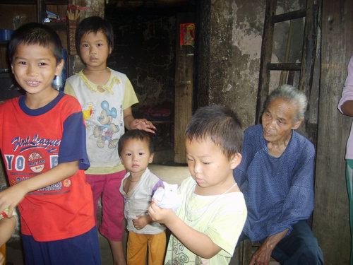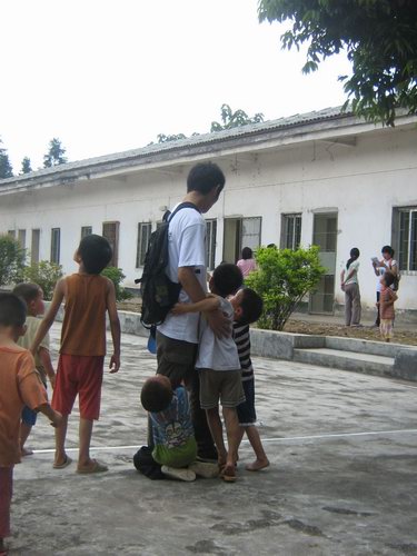 他们用好奇而纯真的眼光探索着我们这些陌生的面孔,时而微笑,时而大叫;或坐在我们腿上,或抱紧我们的肚子;他们毫无拘束地玩耍着……